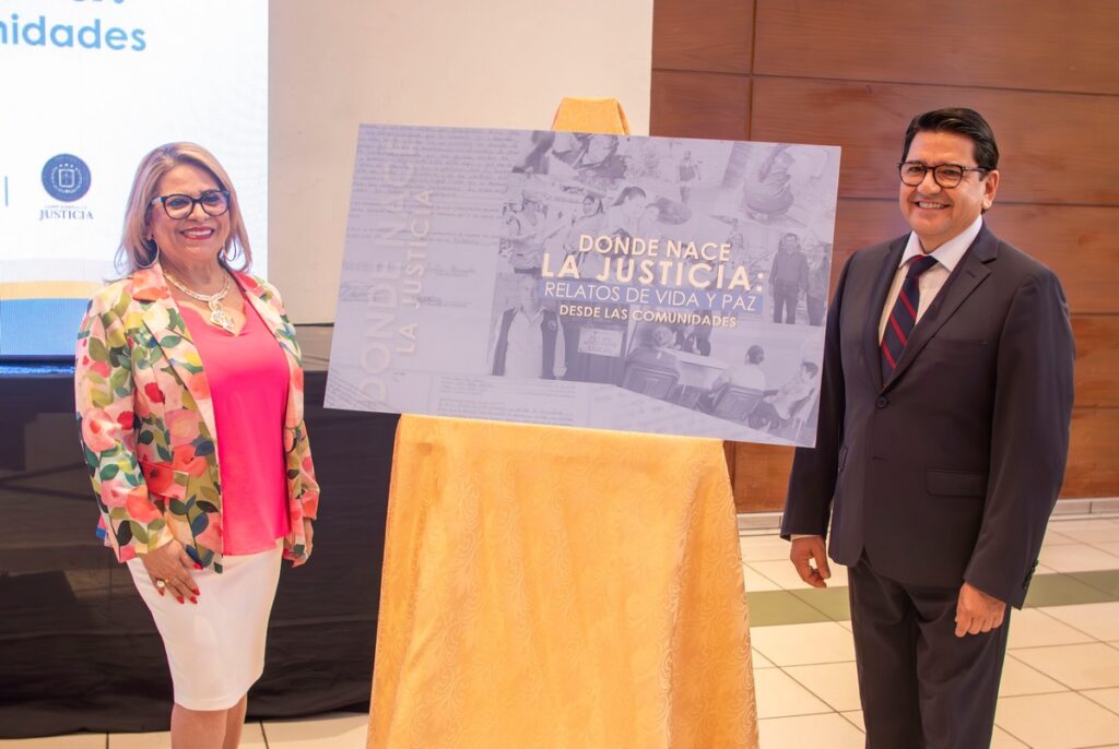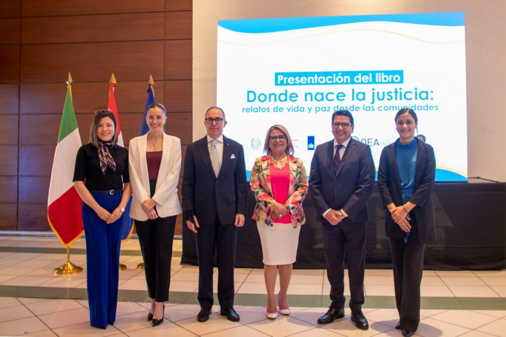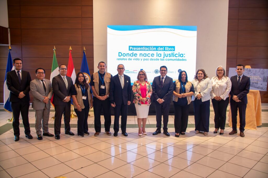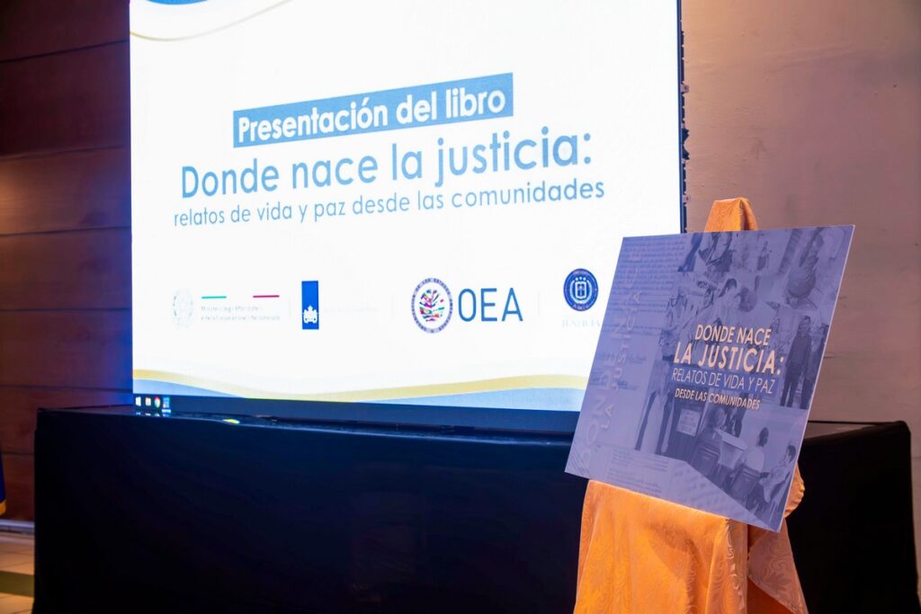 El Programa Interamericano de Facilitadores Judiciales (PIFJ), ejecutado por la Organización de los Estados Americanos (OEA), en coordinación con la Corte Suprema de Justicia de El Salvador, realizó la presentación del libro “Donde nace la justicia: relatos de vida y paz desde las comunidades”. Esta obra reúne historias reales que evidencian el impacto de la justicia comunitaria en la vida cotidiana de las personas y el rol esencial del liderazgo local en la prevención de conflictos y la construcción de convivencia pacífica.