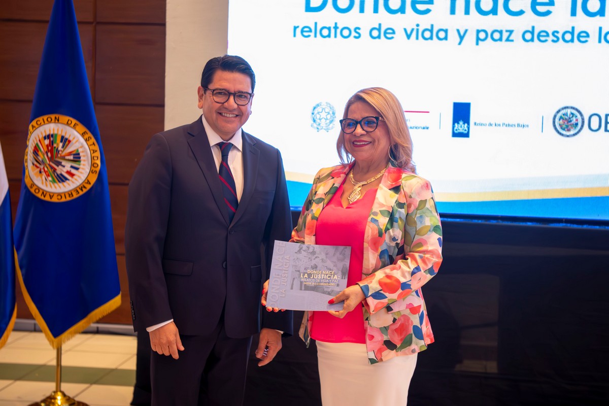 El Programa Interamericano de Facilitadores Judiciales (PIFJ), ejecutado por la Organización de los Estados Americanos (OEA), en coordinación con la Corte Suprema de Justicia de El Salvador, realizó la presentación del libro “Donde nace la justicia: relatos de vida y paz desde las comunidades”. Esta obra reúne historias reales que evidencian el impacto de la justicia comunitaria en la vida cotidiana de las personas y el rol esencial del liderazgo local en la prevención de conflictos y la construcción de convivencia pacífica.
